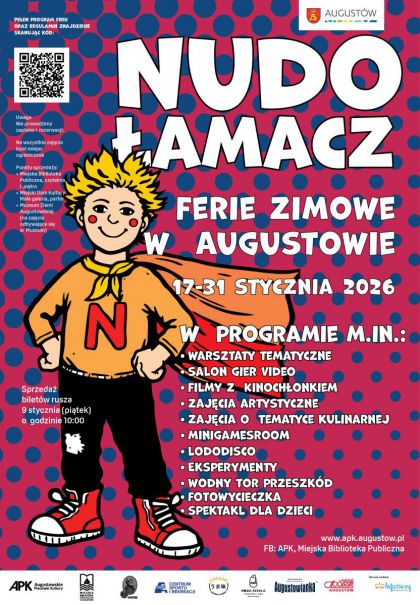 Augustowskie Placówki Kultury zapraszają wszystkie dzieci i rodziców do wspólnej zabawy podczas ferii. W tym roku ponownie do akcji wkracza Nudołamacz i przedstawia Państwu cały wachlarz możliwości na spędzenie wolnego czasu podczas ferii zimowych. Bądźcie z nami od soboty 17 stycznia do soboty 31 stycznia i nie dajcie się nudzie!