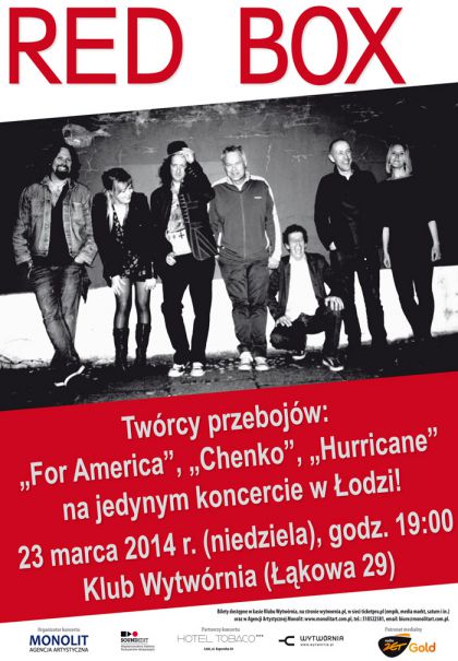 Red Box, brytyjska legenda muzyki znanej jako synth-pop, reaktywowana po 20 latach milczenia. Zespół założony w latach osiemdziesiątych przez Simona Toulson – Clarke’a i Juliana Close’a wystąpi na jedynym koncercie w Łodzi. Klub Wytwórnia, 23 marca 2014 r. (niedziela), godz. 19:00.