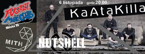 Panie i Panowie, chłopcy i dziewczęta niezmiernie miło nam poinformować, że w najbliższy piątek 6.11.2015r. do klubu Fugazi przy ul. Mińskiej 65 w Warszawie zawita tegoroczny półfinalista Eliminacji do Przystanku Woodstock czyli zespół KaAtaKilla! Jako support zagrają zespoły Nutshell oraz Mith.