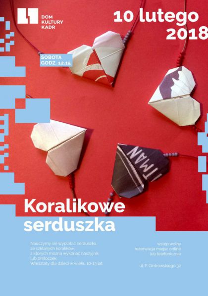 Warsztaty dla dzieci w wieku 10-13 lat. Nauczymy się wyplatać serduszka ze szklanych koralików, z których można wykonać naszyjnik lub breloczek.