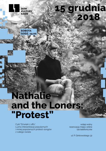 Nathalie and the Loners to pseudonim Natalii Fiedorczuk-Cieślak, kompozytorki, wokalistki i multi-instrumentalistki. Zadebiutowała w 2009 roku płytą “Go, Dare”, w 2012 roku ukazał się krążek “On being sane in insane places”. Natalia zajmuje się komponowaniem muzyki ilustracyjnej – do filmów i spektakli teatralnych, jest autorką ścieżki dźwiękowej do dokumentu “Mów mi Marianna” i debiutu fabularnego Ewy Bukowskiej „53 wojny”. Jest związana z zespołem Happy Pills. Od 2016 ścieżkę muzyczną przeplata twórczością literacką: jej debiut powieściowy „Jak pokochać centra handlowe” zdobył Paszport Polityki w dziedzinie literatury oraz nominacje do szeregu prestiżowych nagród literackich (m.in. Nagroda im. J. Conrada, Nagroda im. W. Gombrowicza). W maju 2018 ukazała się jej druga, świetnie przyjęta powieść „Ulga” (Wielka Litera). Rzadko koncertuje, zatem występ w DK Kadr będzie jedną z nielicznych okazji, by posłuchać Natalii w odsłonie muzycznej.